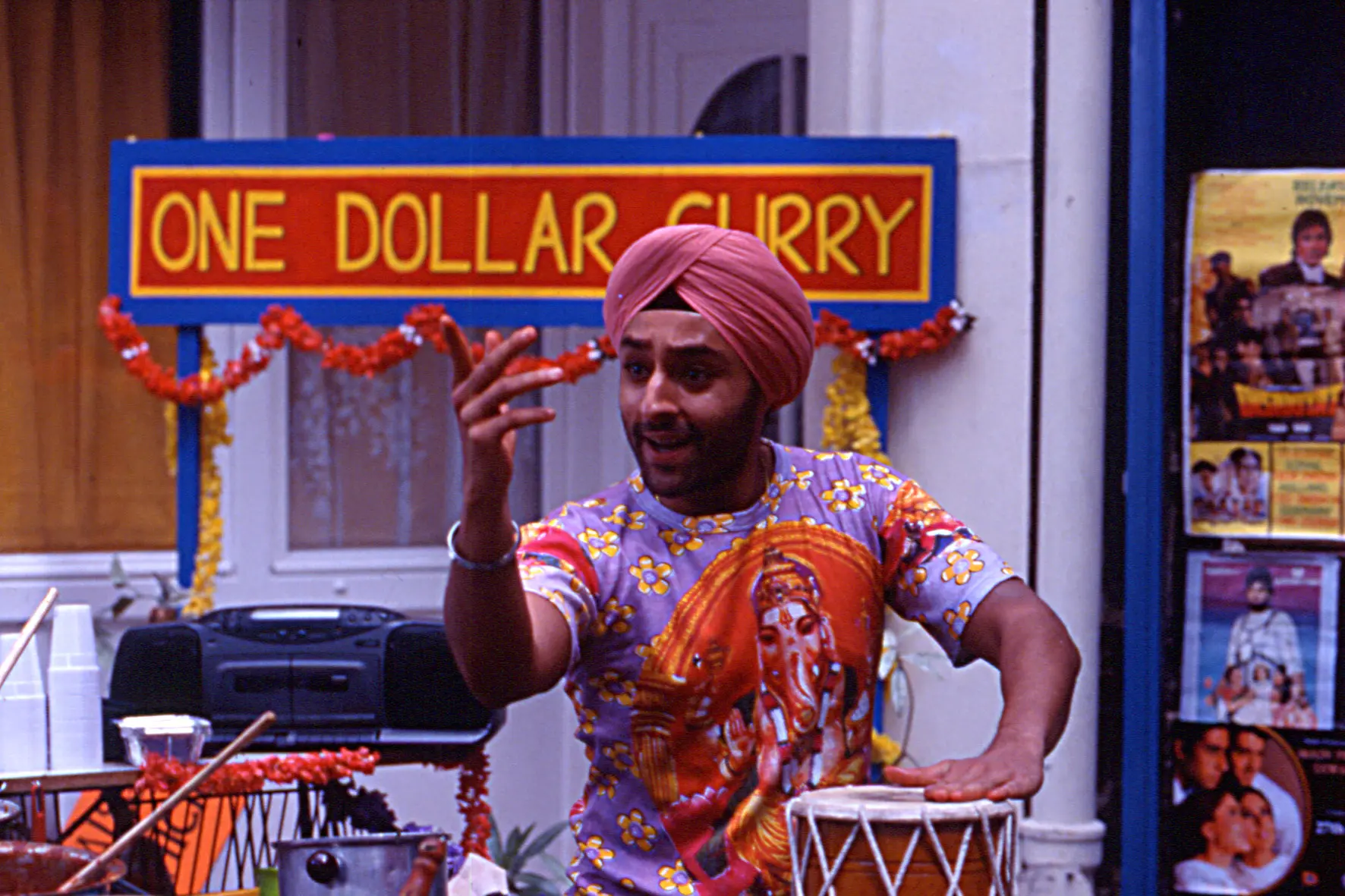 Nishan, un jeune Sikh en quête d’asile politique, a choisi la France comme pays d’accueil. Il ne lui reste plus qu’un ballot, avec quelques petits trésors : des flacons colorés d’huile “Kamasutra Nandi Bull”, dont il saura vite faire usage…Armé de son humour et de son imagination, il commence à réfléchir à sa survie. Il est d’ailleurs vite dépassé par la créativité professionnelle de ses camarades. Futé, l’Antillais et Bale, cumulent les jobs les plus extravagants : vente d’aphrodisiaques, massages “tantra”, édition du « Kamasutra Times »… Quant à Nishan, il fait un choix modeste : il se lance dans la cuisine de curry pas cher. Dans cet univers de la débrouille, Nishan s’autoproclame tout simplement « célèbre chef indien » à Paris ! Le stand de cuisine ambulante “One Dollar Curry” démarre sous de bons auspices, pimenté par ses inventions culinaires et son look excentrique… Au beau milieu de cette effervescence, Nishan rencontre Nathalie, une jeune journaliste, qui effectue des recherches pour un documentaire sur l’immigration. Séduite par son histoire, elle lui offre un toit pour le sortir des griffes d’un concurrent belliqueux, mais aussi pour défendre ses propres intérêts. Pour elle, un film bien ficelé sur le « chef légendaire » représente un tremplin professionnel inespéré. Fort inspiré par ce nouveau rôle, Nishan s’évertue à construire son personnage en volant des recettes, en improvisant des plats aux épices délirantes, en s’inventant des ancêtres prestigieux…Nathalie et Nishan n’ont plus qu’un défi, celui de présenter à François -un grand producteur de télévision-, un sujet de documentaire sans faille